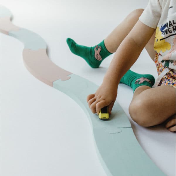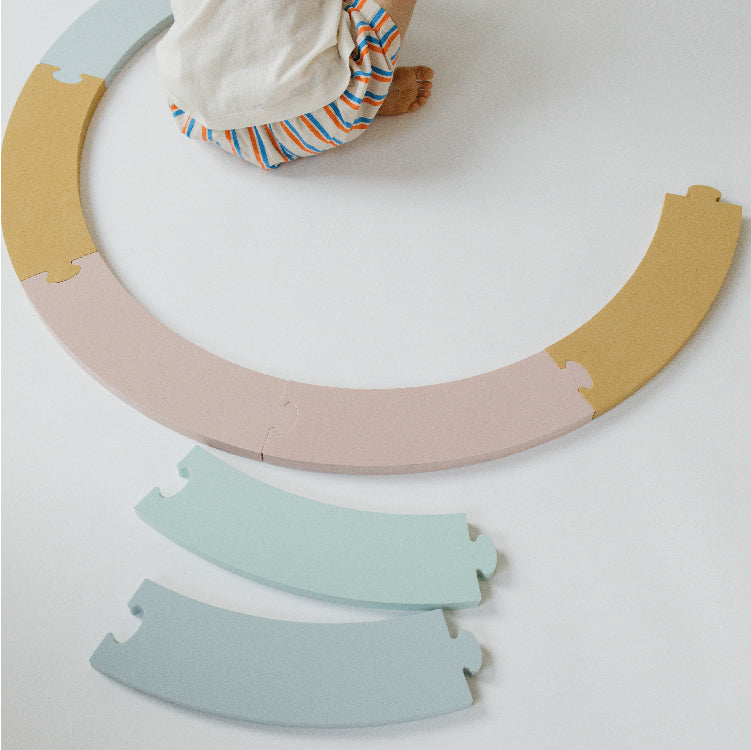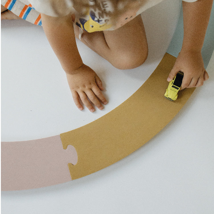 Imagipath is een veelzijdige speelset bestaande uit 8 onderdelen die op verschillende manieren kunnen worden samengevoegd tot een parcours. Kinderen kunnen een looproute creëren om overheen te lopen of het parcours gebruiken als een racebaan voor auto's en ander speelgoed. De set biedt de vrijheid om cirkelvormige, slingerende of fantasierijke opstellingen te maken. Ideaal voor de allerkleinsten om vertrouwd te raken met parcoursen en 'de vloer is lava' spel, dankzij de optimale hoogte van de stukken."