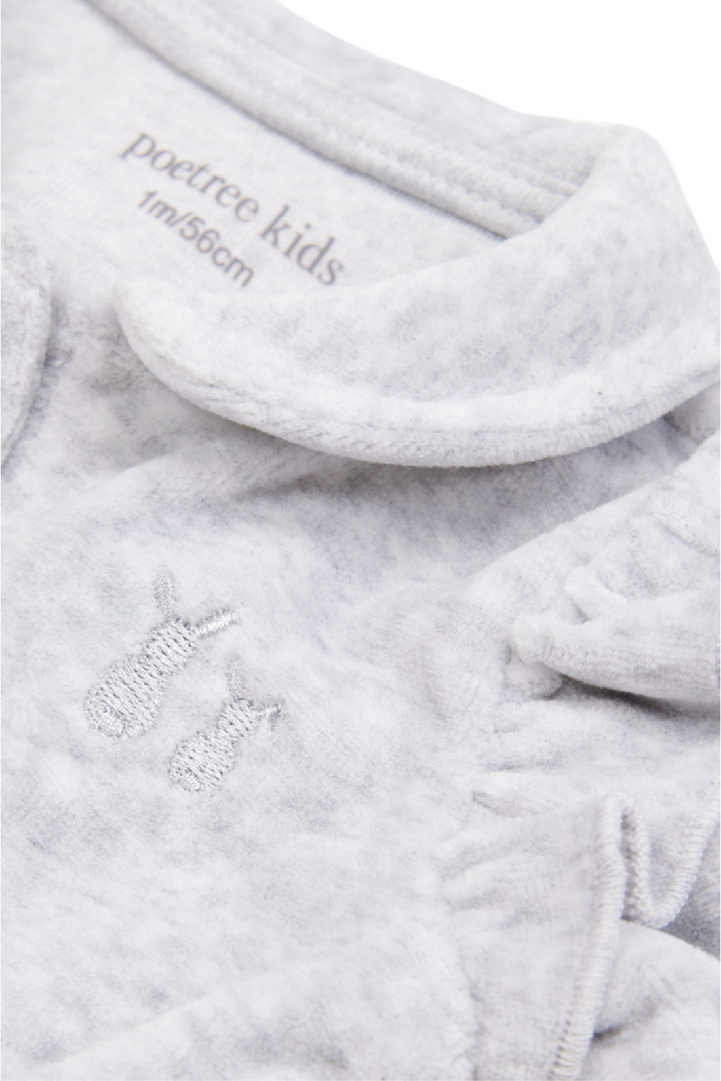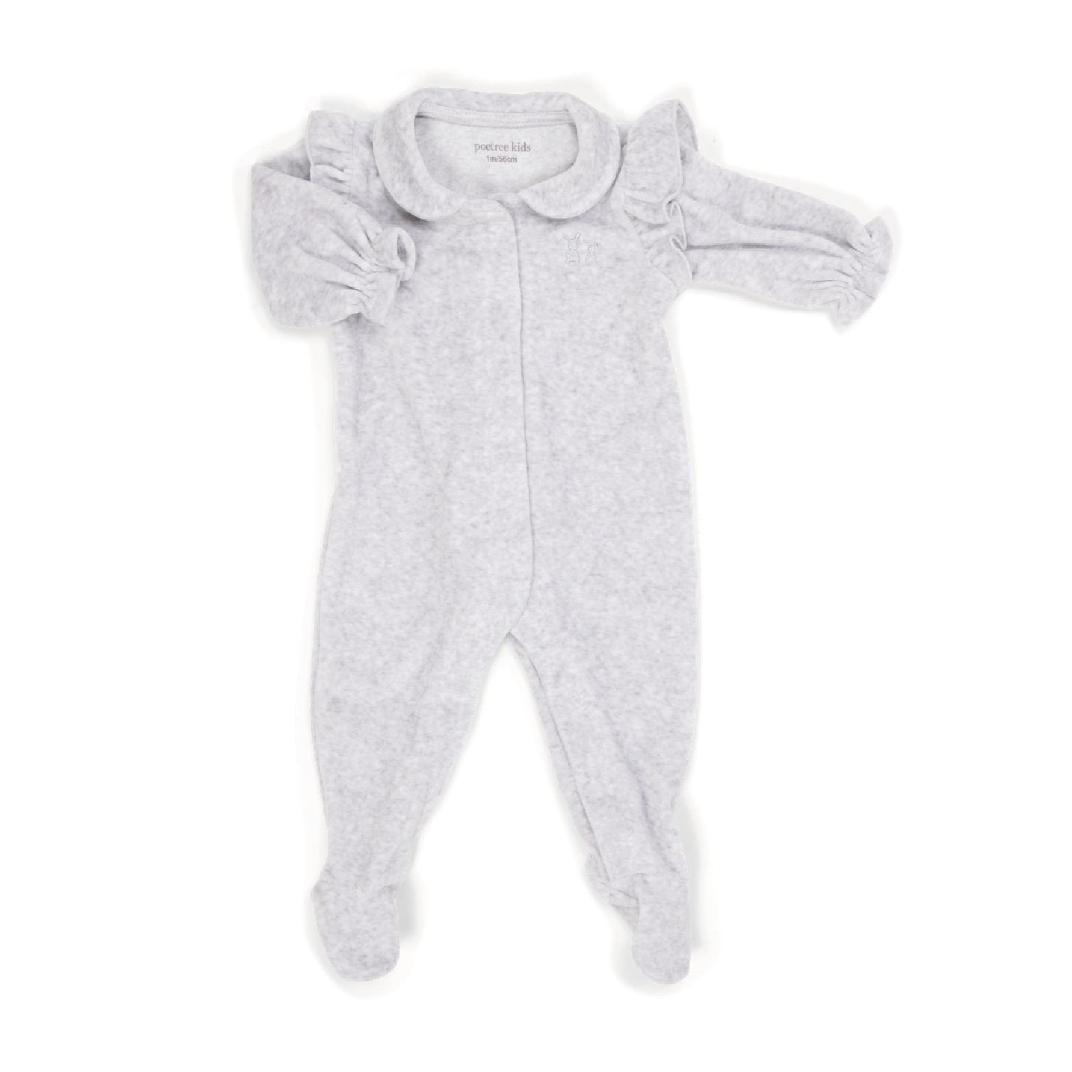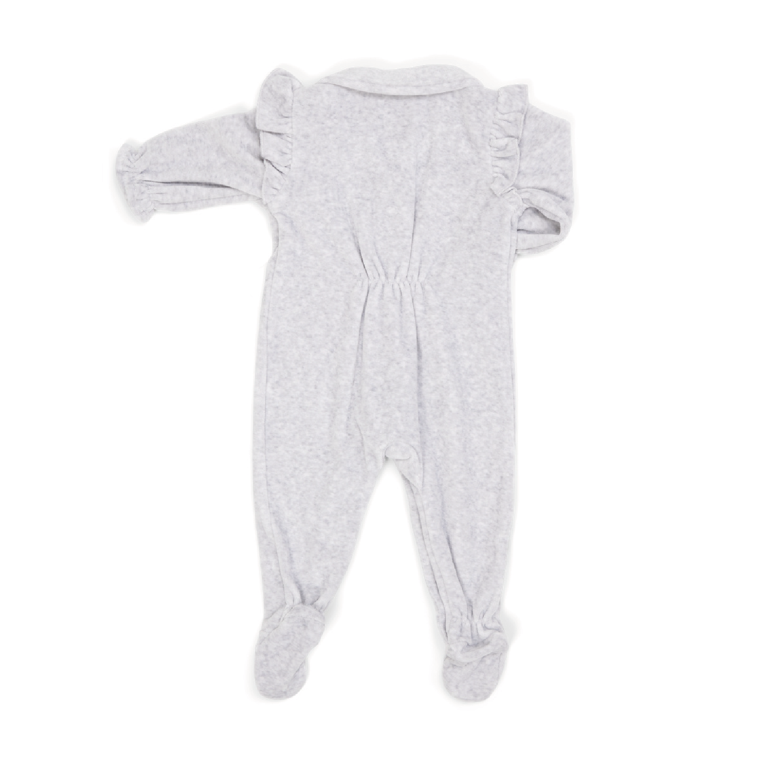 Dit babypakje is gemaakt van super zacht fluweel en heeft leuke ruffles bij de schoudertjes en kleine plooitjes op de rug.