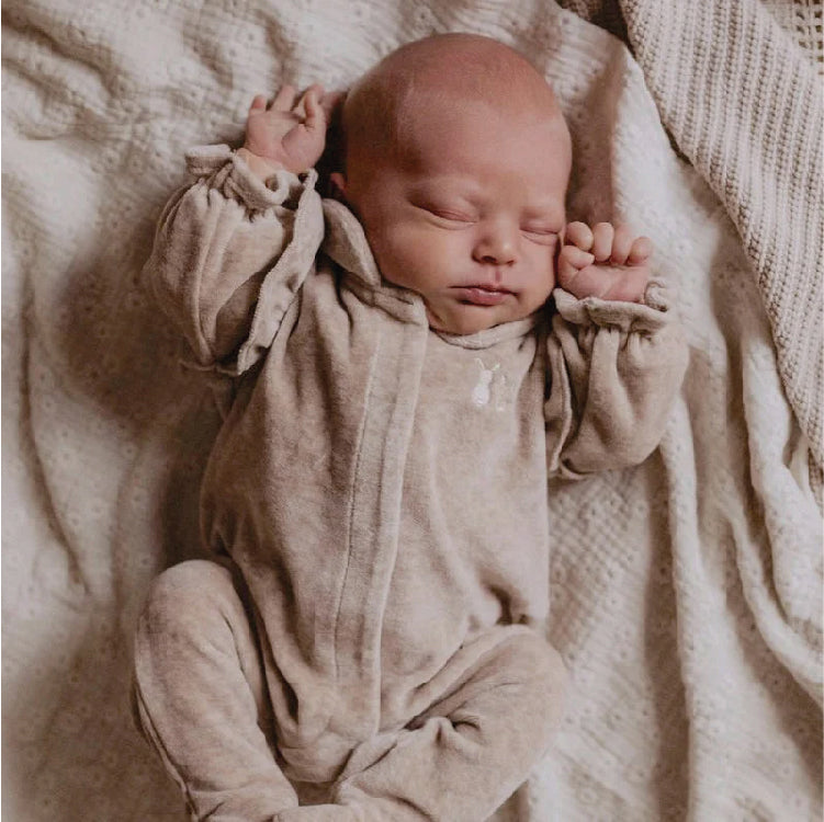 Het babypakje heeft een sluiting aan de voorzijde, zodat je de baby gemakkelijk kan verschonen.