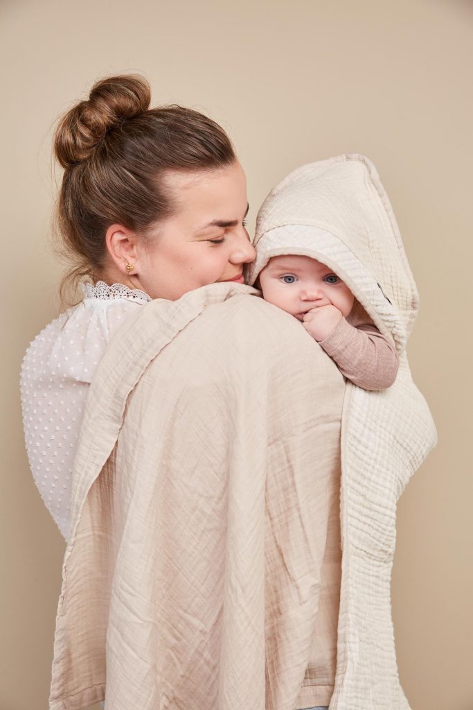 Je kindje blijft heerlijk warm in de zachte badcape uit de Pure Cottoncollectie. De badcapes zijn in verschillende kleuren verkrijgbaar en perfect te combineren met gehele bébé-jou collectie. Dankzij de stof absorberen de badcapes goed en houden warmte vast. De comfortabele kap zorgt ervoor dat het hoofdje van je kindje na het badderen niet te snel afkoelt.