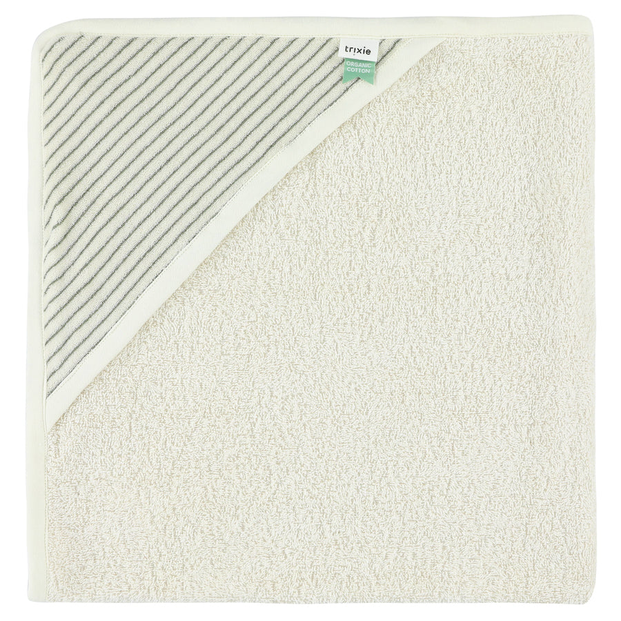 Badcape van Trixie in de collectie Stripes Olive, in badstof. Perfect om uw baby na het bad in te wikkelen en dit moment van verbinding te verlengen.