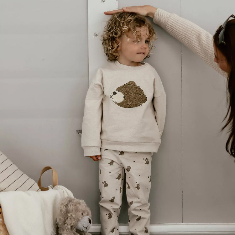 Zachte legging, van biologisch katoen en modal. Er zitten rekjes in de rand zodat je ze op hun plaats houdt.