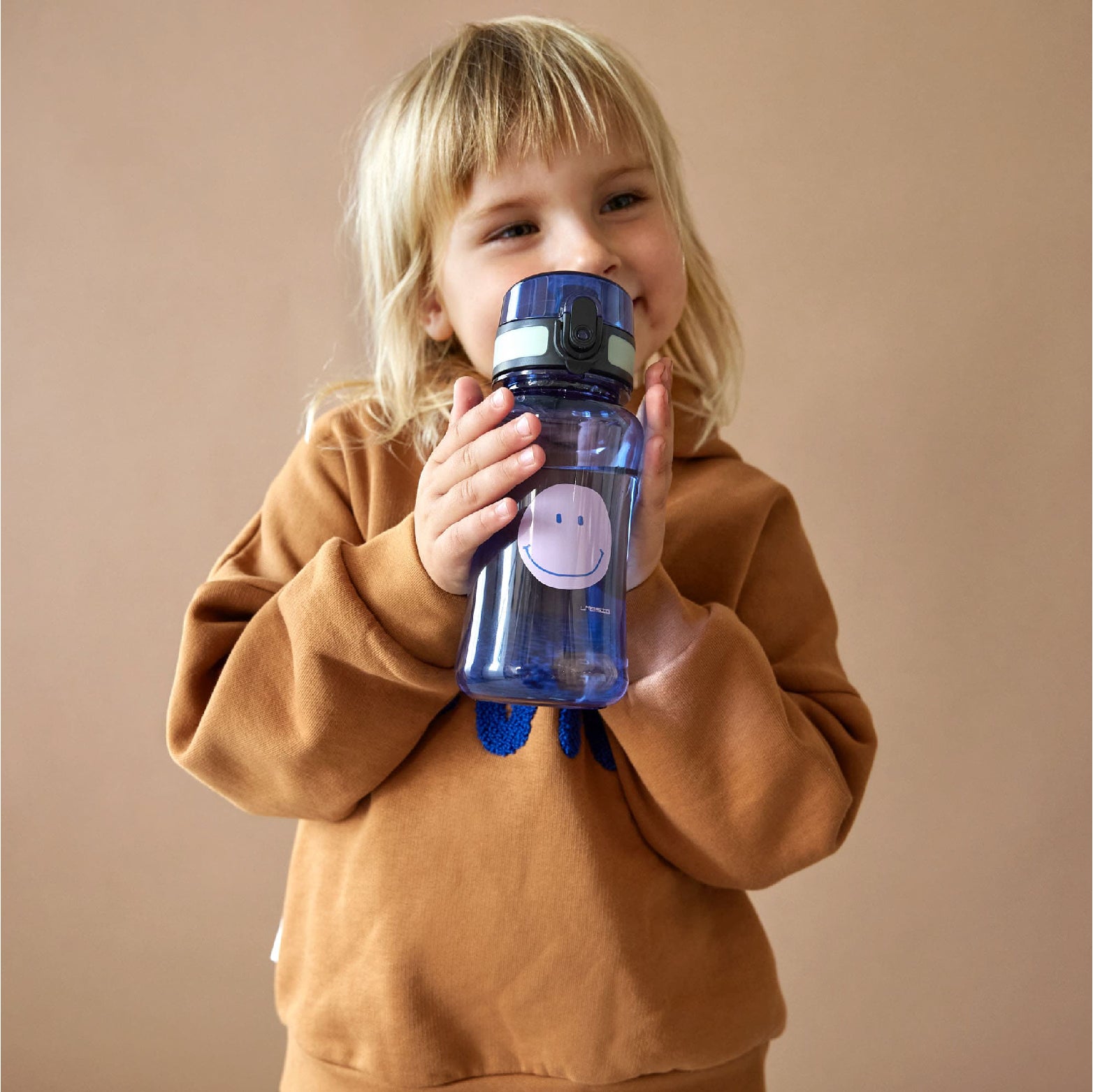 De bijpassende BPA-vrije en breukvaste kinderdrinkfles van 100% Tritan heeft een lekvrij deksel met veiligheidssluiting, zodat deze ook goed gesloten blijft in de rugzak. Dankzij de praktische 1-kliksluiting is hij heel gemakkelijk te openen. Samen met een inhoud van 460 ml is dorst geen obstakel meer voor kleine avonturiers. De schattige drinkfles voor kinderen is geschikt voor stilstaande, koele en lauwe dranken. Dankzij het ergonomische ontwerp past hij ook bijzonder goed in kinderhanden.