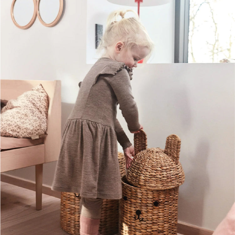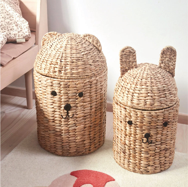 Elke ouder weet dat als het op opbergen voor onze kleintjes aankomt, je er nooit genoeg kunt hebben. Geniet van de schattige Bear & Rabbit opbergmanden om de kinderkamer op te ruimen, maar ook om speelgoed binnen handbereik te houden voor de kleintjes. De Bear & Rabbit Opbergmanden zijn gemaakt van 100% Seagrass en zijn met de hand gevlochten. Seagrass is een natuurlijk materiaal, en daarom kan het variëren in vorm en ontwerp. Seagrass gaat moeiteloos op in de rest van uw interieur. Wordt verkocht als set van 2.