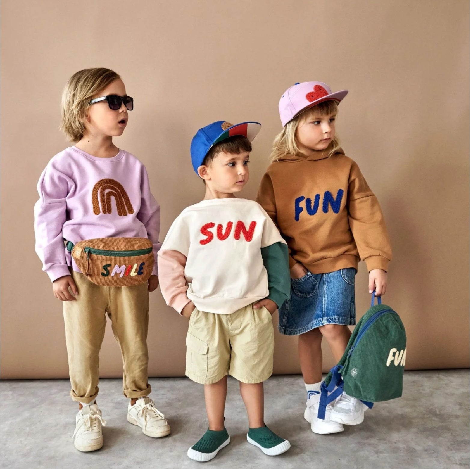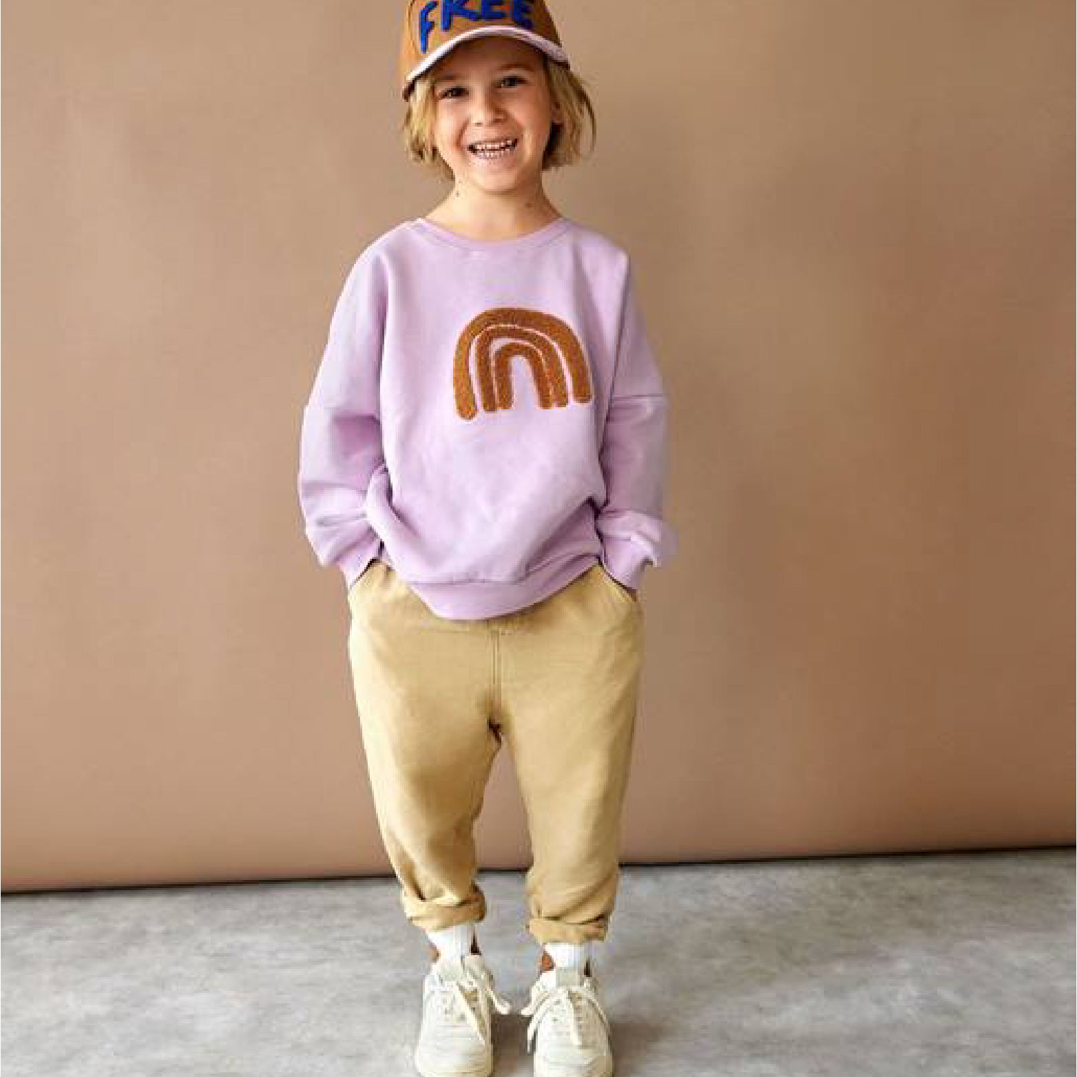 De GOTS-gecertificeerde, knuffelzachte kindertrui van biologisch katoen maakt elke look af met modieuze kleuren en opvallend 3D-borduursel van badstof.