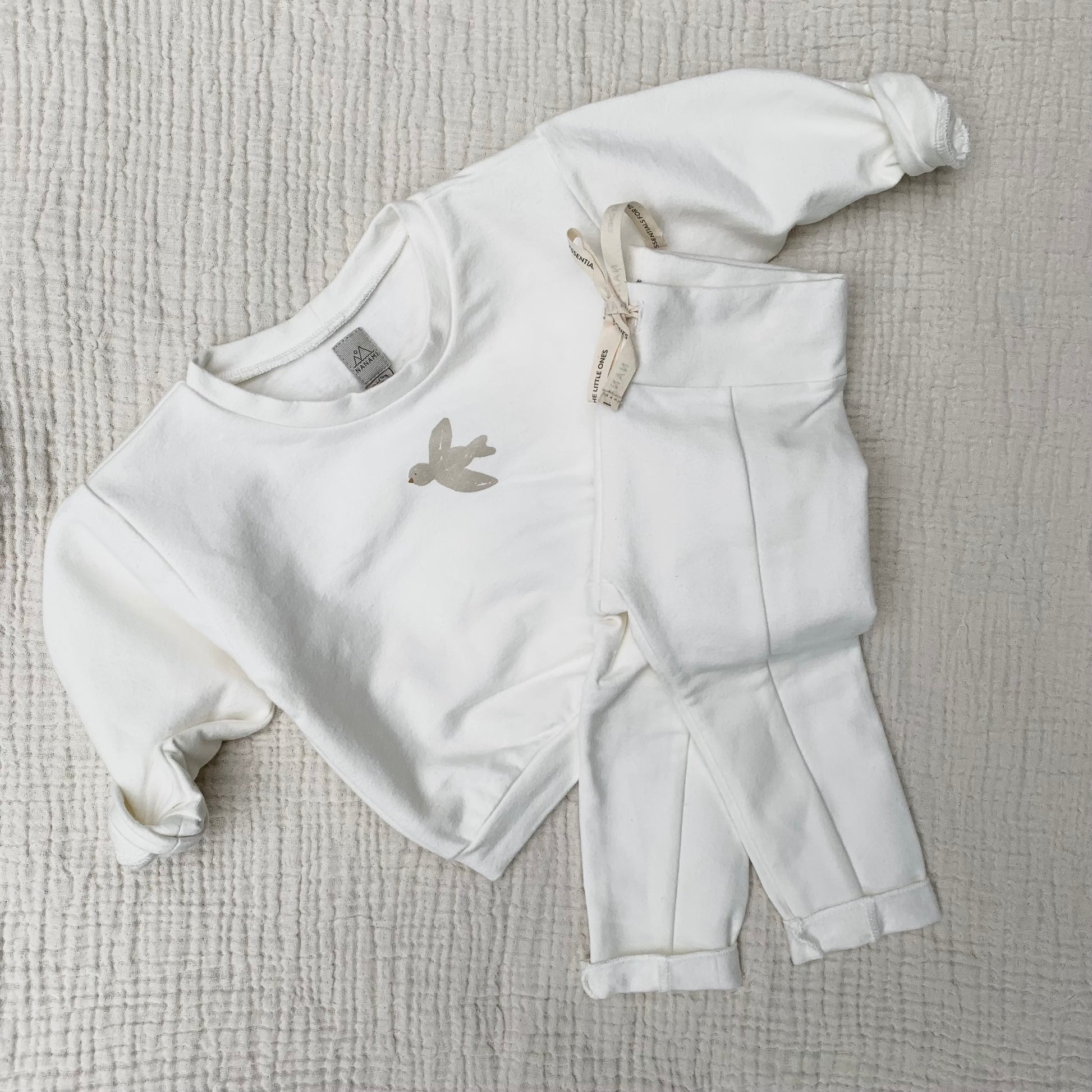 Dit truitje is gemaakt van 100% katoen in een zachte sweater kwaliteit. Aan de voorkant zit een vogel printje.