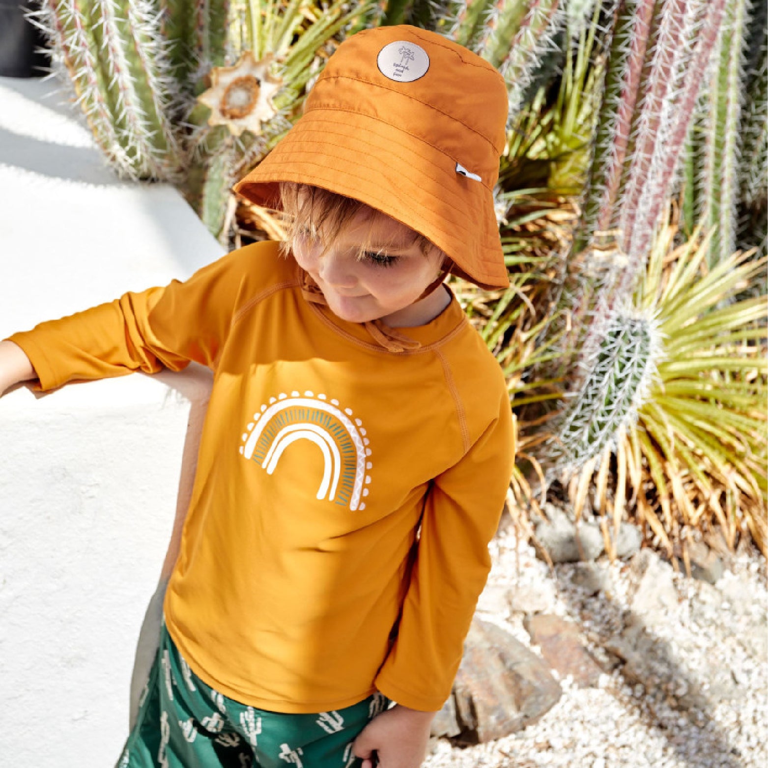 Het gele UV-kindershirt met lange mouwen en UV-bescherming 60 heeft een regenboogprint en extra zachte stof. Het ademende en sneldrogende materiaal zorgt voor een comfortabele pasvorm en plezier in het water. Het LÄSSIG UV-kindershirt met lange mouwen van 82% polyester (gerecycled) en 18% elastaan met UV-bescherming 60 en speelse prints zorgt voor zorgeloos plezier in het water. In combinatie met de juiste zonnebrandcrème en de bijpassende zwemluier of zwembroek uit de LÄSSIG Splash & Fun collectie is de zwemoutfit voor kinderen compleet.