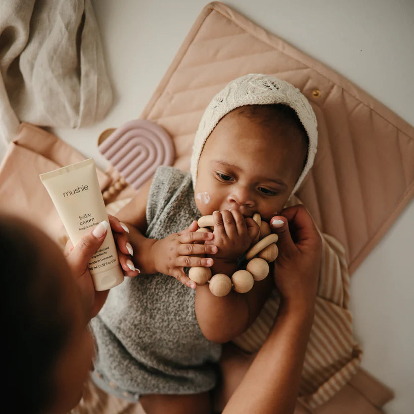 Mushie Baby Cream biedt een beschermende barrière die de droge huid kalmeert en voorkomt. Deze universele crème is zacht genoeg voor dagelijks gebruik en is geschikt voor droge, geïrriteerde huid. De crème hydrateert, verzacht en beschermt.