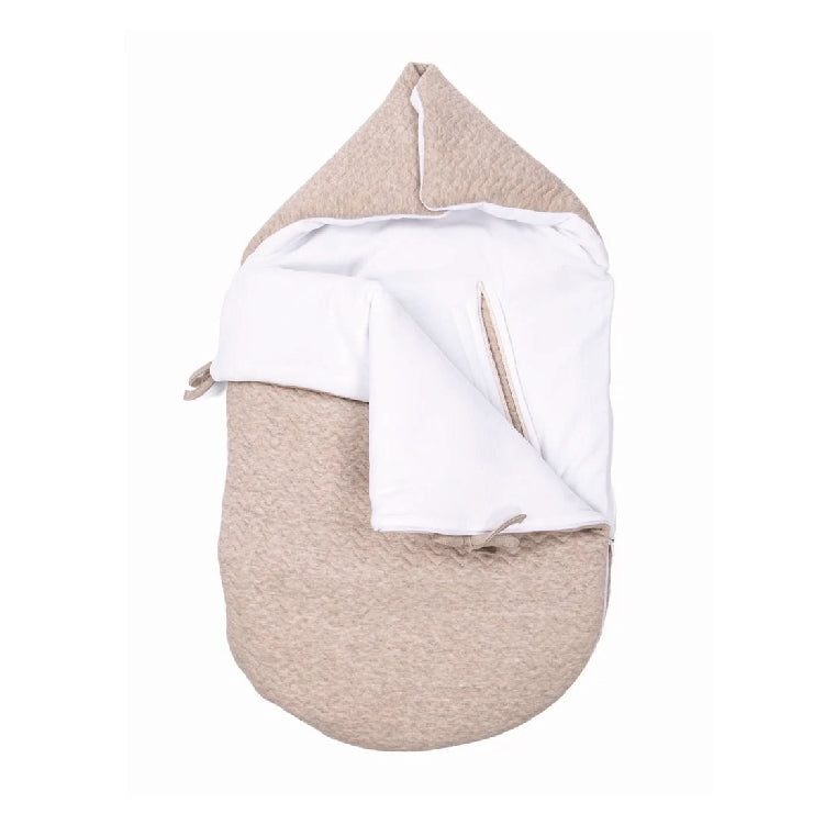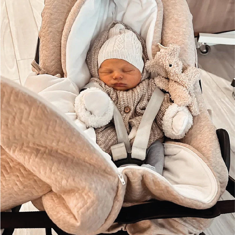 Deze zachte jersey baby voetenzak uit de Chevron Light Camel collectie is een van onze outdoor must haves. Hij is te gebruiken in het autostoeltje (bv Maxi-Cosi) of in de kinderwagen.