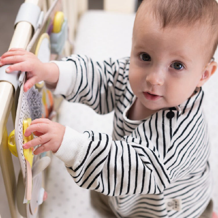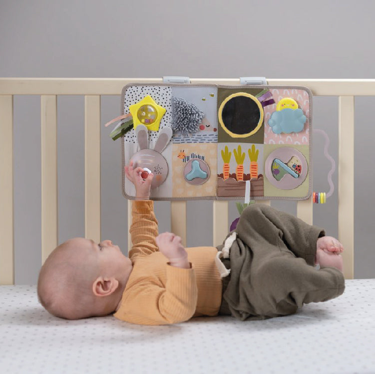 Het Urban Garden activiteitencentrum met muziek en licht groeit mee met je baby en is geschikt voor 3 ontwikkelingsstadia. Het Developmental Activity Center bevat 13 ontwikkelingsactiviteiten: muziek en lichtgevend konijntje, kiekeboe-activiteiten, een sterk met kleurrijke lintjes en een rammelend balletje, een ratelrupsje, babyveilige spiegel, een doolhof met kleurrijke ringetjes, een egel met een zachte structuur en een bietenbijtring. Spelen met de verschillende activiteiten stimuleert de ontwikkeling van baby's zintuigen, fijne en grove motoriek en oog-handcoördinatie. Het activiteitencentrum kan aan de zijkant van de wieg of het park worden bevestigd of je kindje kan er al (buik)liggend of zittend mee spelen. Ook ideaal om samen te spelen en zo de interactie tussen ouder en kind te vergroten.