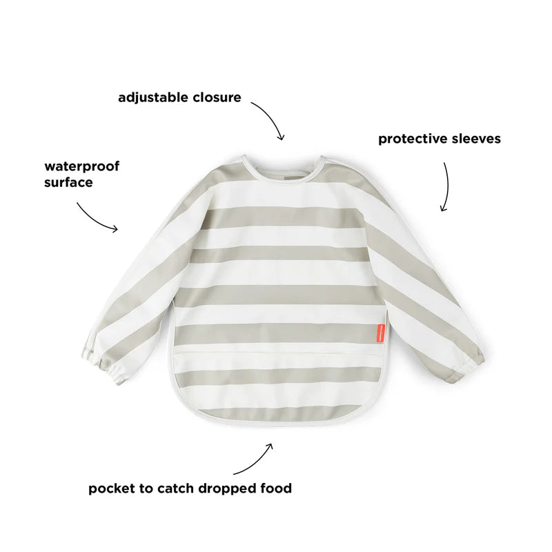 Het zachte slabbetje is waterdicht en heeft praktische elastische mouwen om je kleintje droog te houden. Het is gemakkelijk schoon te vegen en bespaart je een hoop schoonmaakwerk.