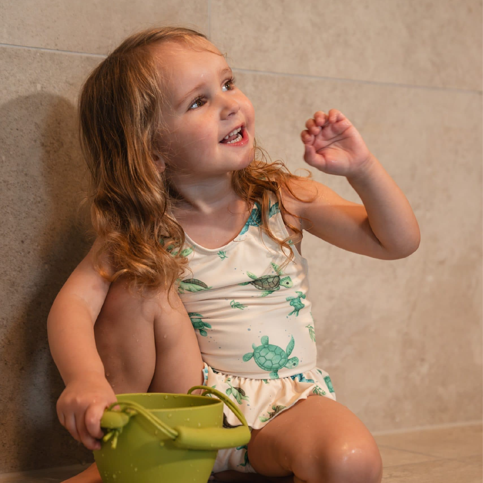 De UV-bescherming van je badkleding kan na verloop van tijd afnemen of door het uitrekken van de badkleding. Heldere kleuren kunnen na verloop van tijd vervagen door direct zonlicht of contact met sterk gechloreerd water.