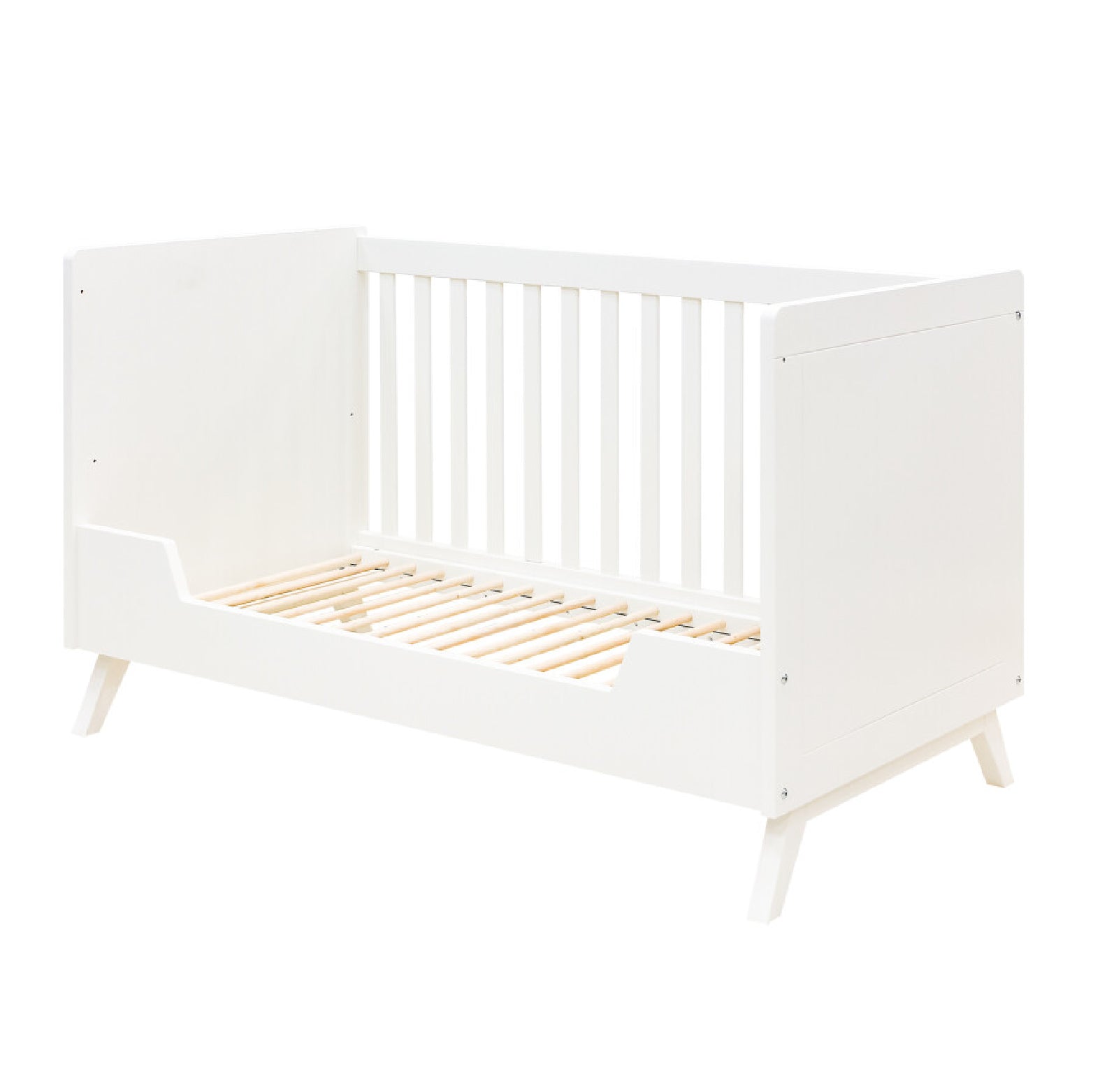 Dit babybed (70 x 140 cm) van de serie Anne is om te bouwen van een babybed met spijlen, naar een peuter bedbank zodat de kleine zelf kan in- en uitstappen en hieraan kan wennen. Bedbodem, spijlenrek en lage zijde voor de bedbank worden standaard meegeleverd. Bedbodem van het spijlenbed is verstelbaar in hoogte. De maat, 70 x 140 cm, is hetzelfde voor beide bedden waardoor één matras volstaat. Omdat je dit bed kan ombouwen heb je er lang plezier van! Let op: dit bed is niet om te bouwen naar een cotbed variant, er is altijd één spijlenzijde aanwezig.