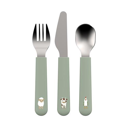 Met de Little Farm kinderbestekset van Mepal Mio kan veilig gesneden en geprikt worden. De set bestaat uit een vork, mes en een lepel. Voor de veiligheid is het mes aan één kant voorzien van een snijkant. Fijn aan het bestek is dat ze geschikt zijn voor kleine kinderhandjes, een goede grip hebben en in de vaatwasser kunnen.