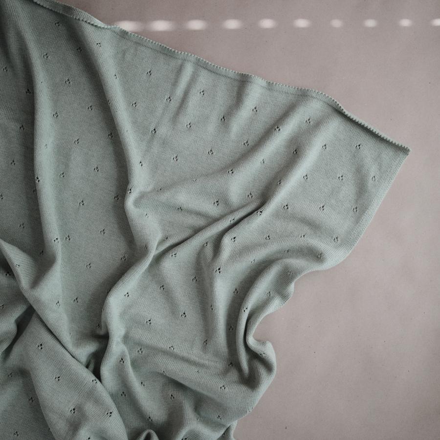 Dit gebreide deken is gemaakt van biologisch katoen en is warm, ademend en ongelooflijk zacht om aan te raken.