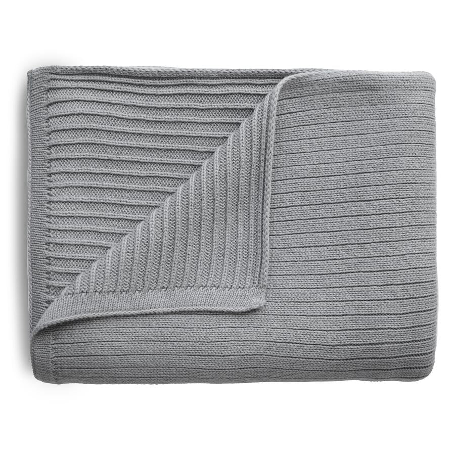 Dit gebreide deken is gemaakt in een gezellig ribpatroon en heeft de perfecte maat voor kinderwagens en wiegjes.