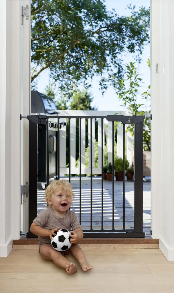 Metalen deurhekje met klemsysteem. Voor deuropeningen van 73,5 tot 79,6cm (zonder verlengstukken).