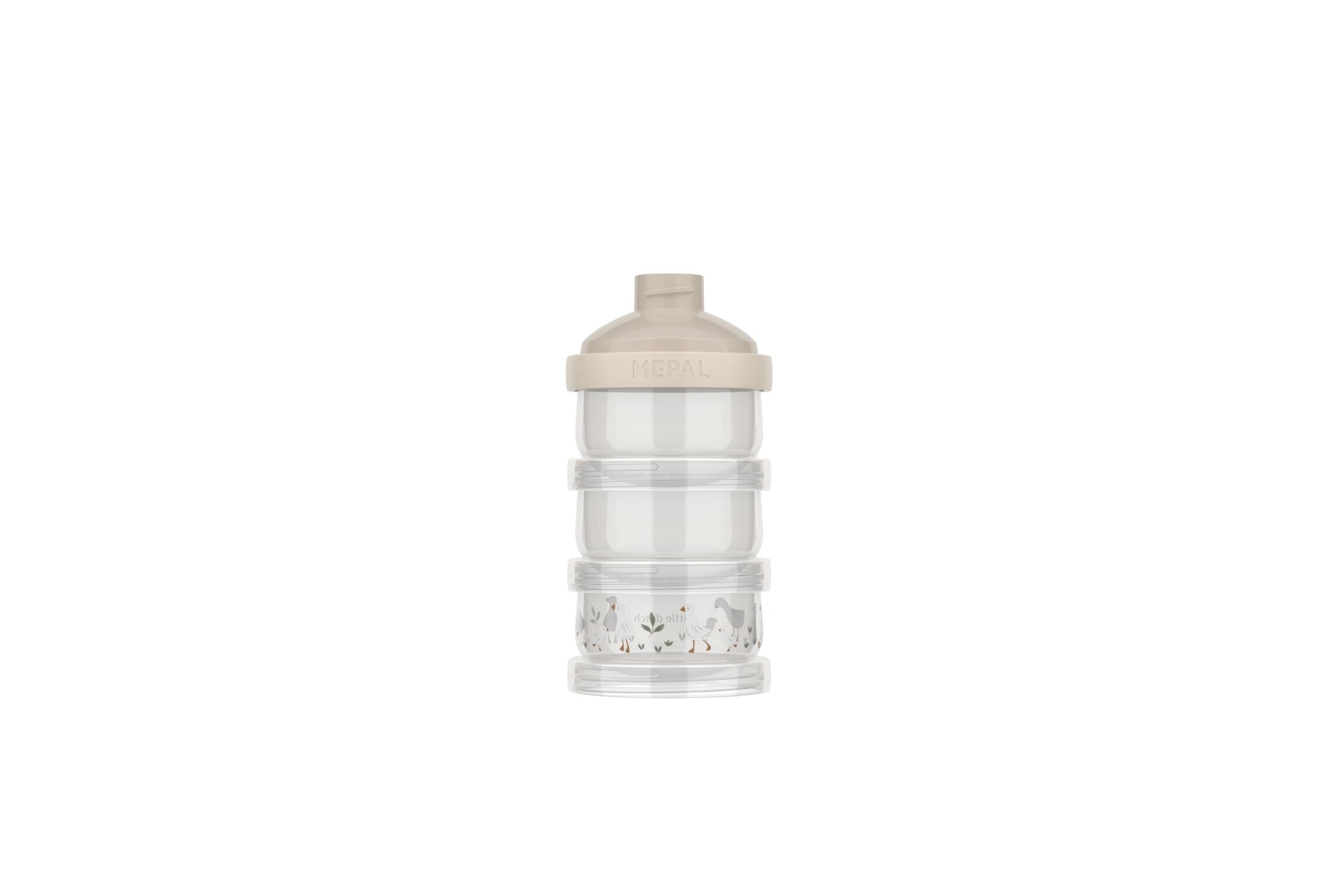 De 3-delige Mepal Mio melkpoedertoren met de Little Goose print biedt een eenvoudige en hygiënische manier om melkpoeder mee te nemen. De toren bevat drie stapelbare compartimenten die individueel afgesloten worden met draaideksels. De handige schenkdop aan de bovenzijde zorgt ervoor dat je het melkpoeder gemakkelijk in een fles kunt schenken. Compact, duurzaam en vaatwasserbestendig, ideaal voor onderweg. Het lieve Little Goose design van Little Dutch maakt deze melkpoedertoren een vrolijke keuze voor ouders.