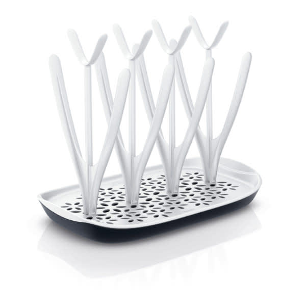 Het Philips AVENT-droogrek is ontworpen om de babyflessen en -accessoires op de schoonste en netste manier te laten drogen. Door het flexibele ontwerp en de afneembare lekbak heb je alles wat je nodig hebt om flessen van alle maten te drogen.