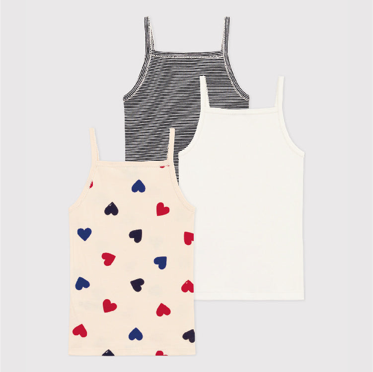 - Set van 3 hemdjes met bandjes in ribkatoen, de emblematische stof van Petit Bateau.