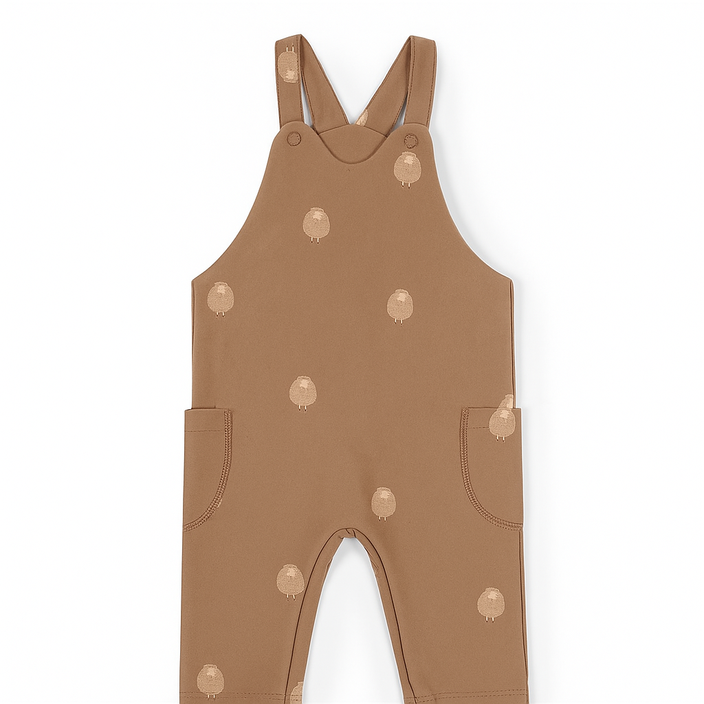 Jumpsuit van biokatoen, rechte halsuitsnijding en gekruiste schouderbandjes op de rug, met drukknopen aan de zomen. Opgezette zakken aan de zijkant. Gemaakt van 100% biologisch gecertificeerde katoen.