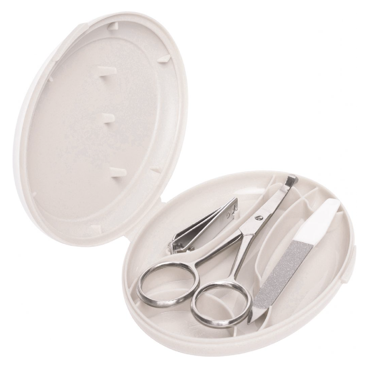 De nageltjes van je kleintje groeien zeer snel. Om te voorkomen dat jekleintje zich krabt is regelmatig knippen en verzorgen erg belangrijk.Het meest praktisch is dit, om na het badderen te doen omdat de nageltjes dan zacht zijn. De manicureset van bébé-jou bevat een nagelvijltje, nagelknippertje en roestvrijstalen schaartje. Deze artikelen zijn speciaal vormgegeven om de kwetsbare kinderhand goed teverzorgen. Het speciale baby nagelschaartje (rvs) is slijtvast, extra veilig door de speciale, afgeronde uiteinden en ook los in etui verkrijgbaar.