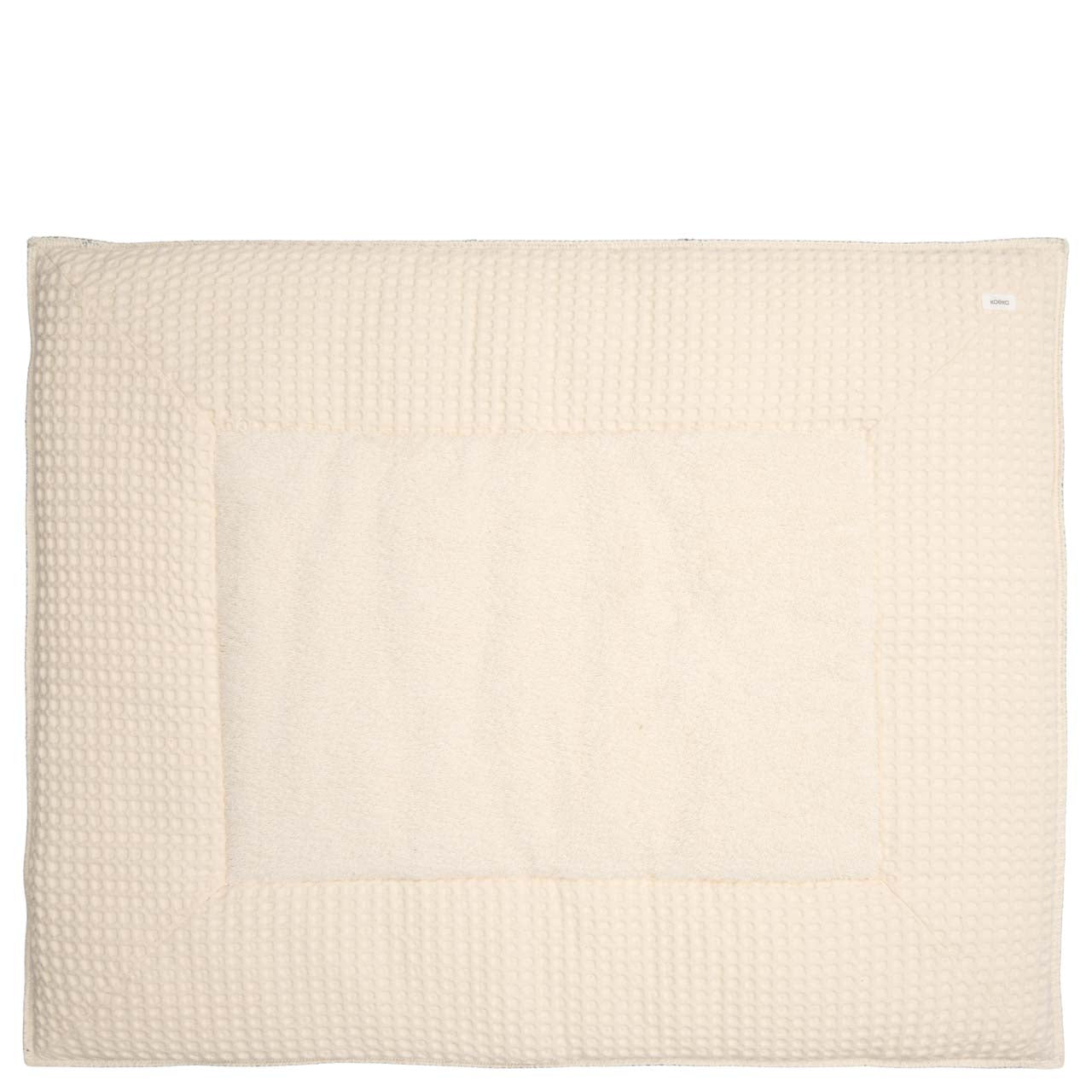 Het boxkleed is gemaakt van hoogwaardig katoen met een ligvlak van badstof in het midden. Het kleed is eenvoudig te wassen in de wasmachine en omdat de voering is meegestikt blijft deze op zijn plaats tijdens het wassen. De afmetingen van dit speelkleed zijn 75x95 cm.