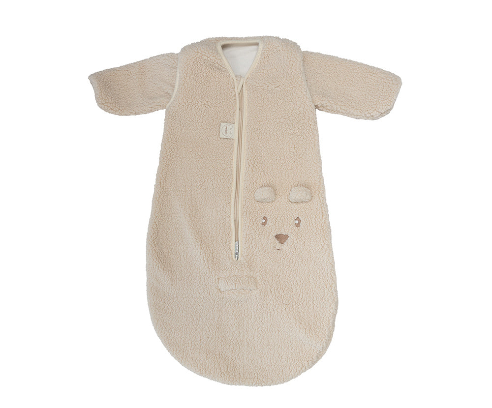 Deze zachte teddy slaapzak zorgt voor een comfortabele en veilige slaapomgeving voor je baby.