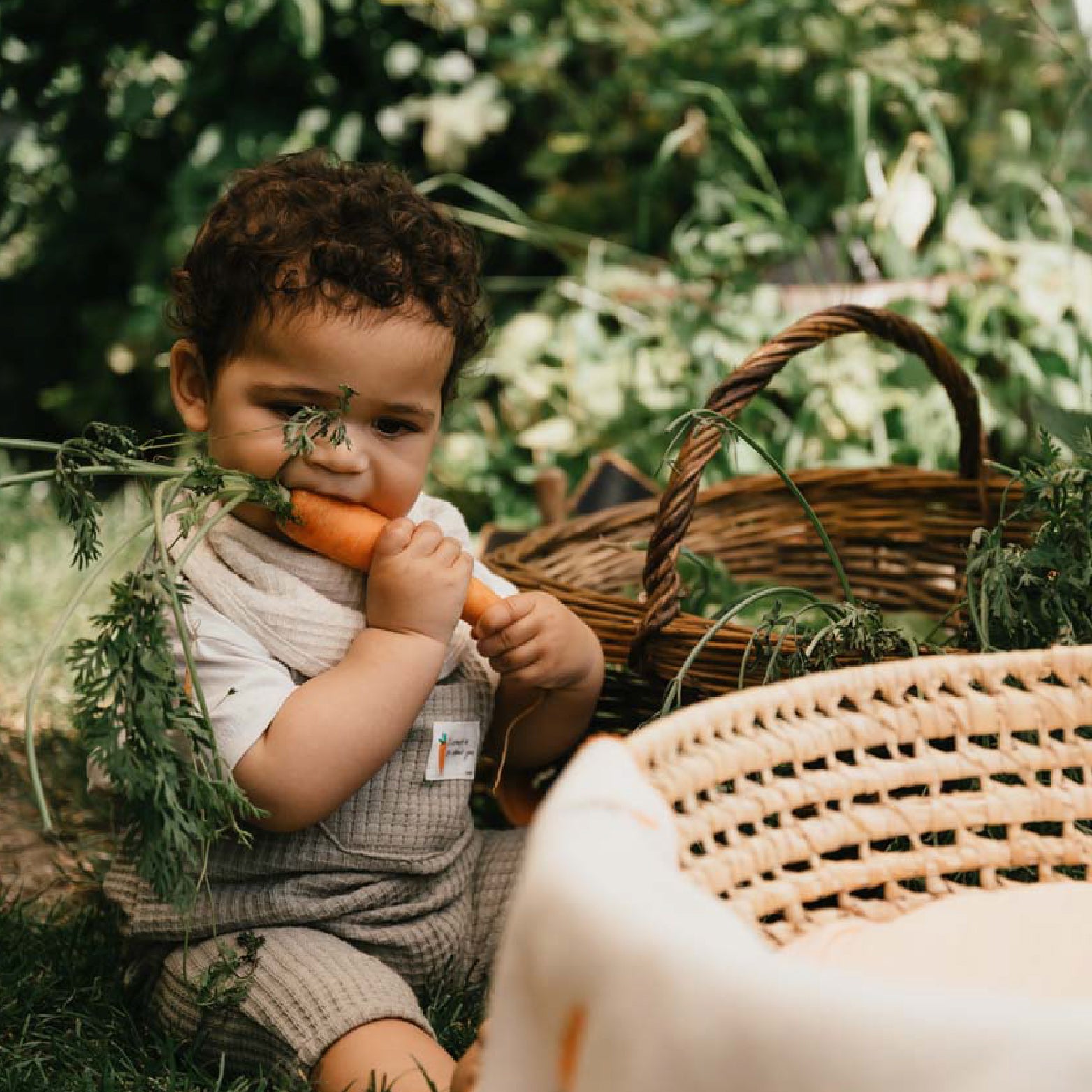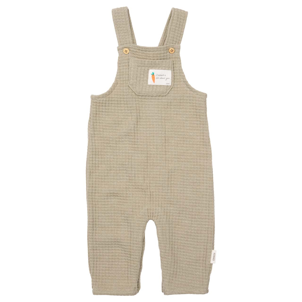 In deze comfy tuinbroek van zachte jersey in een mini wafel-uitvoering heeft je baby alle bewegingsvrijheid om de wereld te ontdekken! De schouderbandjes hebben een knoopsluiting en op het borstzakje vind je een applicatie met knipoog naar de moestuin: I carrot a lot!