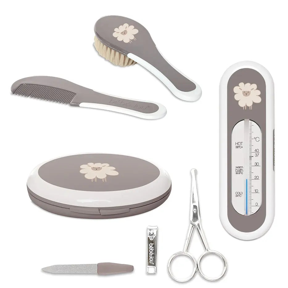 Een praktische verzorgingsset van bébé-jou om toekomstige ouders kado te geven. In deze set zit een kapset, manicureset en een badthermometer. Drie basisproducten die je nodig hebt voor een goede verzorging van je pasgeboren kindje.