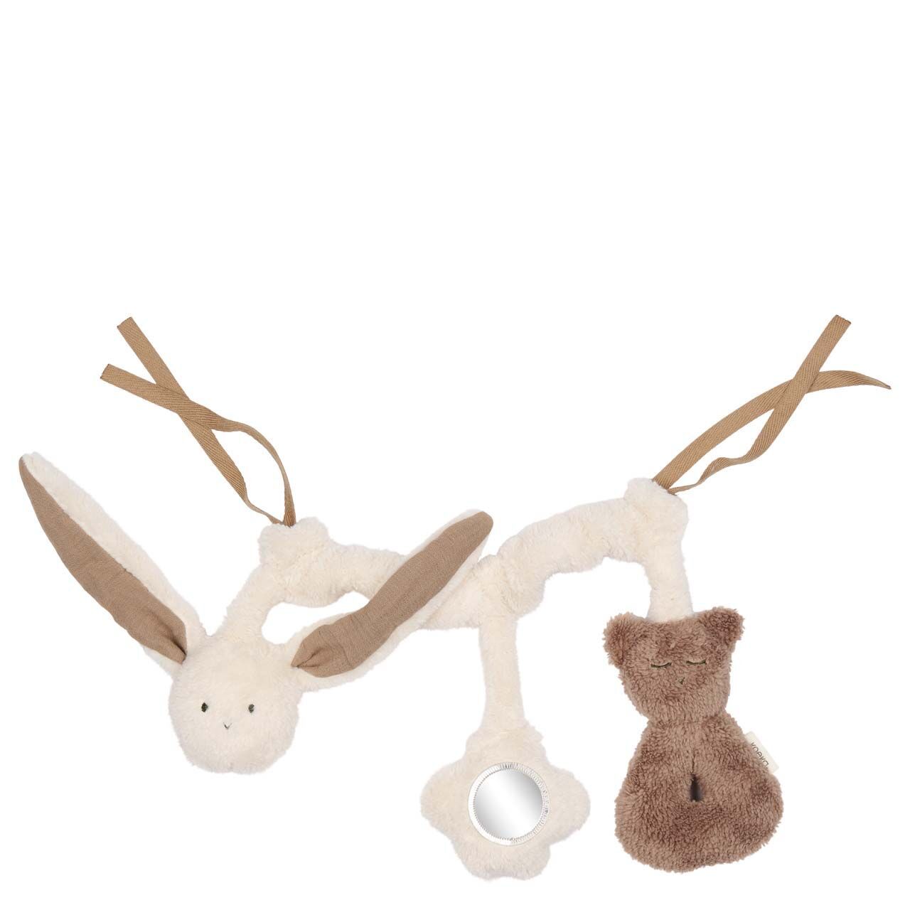 Een speels vriendje voor onderweg. De wagenspanner maakt elke rit leuker met zijn zachte figuurtjes en subtiele rammelgeluid. Makkelijk te bevestigen aan de kinderwagen, zodat je kleintje altijd iets heeft om naar te kijken en te ontdekken. Gemaakt van zachte materialen in rustgevende tinten, perfect voor kleine handjes om vast te grijpen en te voelen. Een lieve metgezel voor vrolijke uitstapjes!