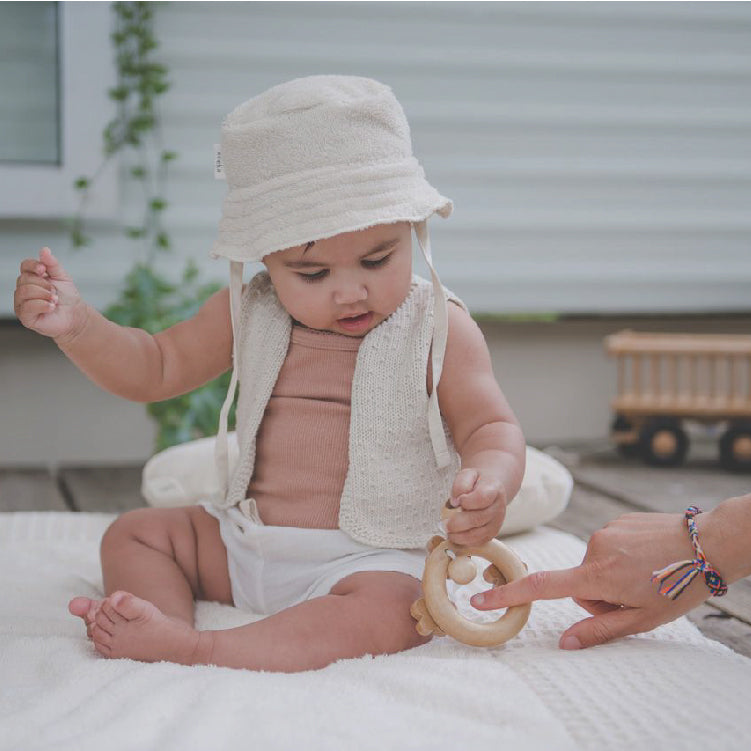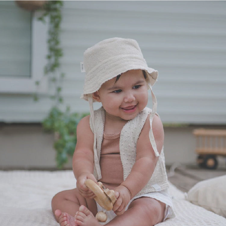 Een zomerhoedje beschermt je kleintje tegen de felle zon en is onmisbaar tijdens zonnige dagen. Deze hippe 'bucket hat' is gemaakt van zacht en vochtopnemend badstof en geeft jouw kleintje een eigenwijze look. Luz is een badstof lijn met producten in zonnige pastelkleuren die aansluit bij het spring summer thema 'Flowerchild'. De producten zijn zacht, vochtopnemend en uitgevoerd in lusvast badstof.